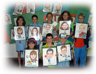 Goofy Faces offers special school rates for classes. We'll even help you organize it. We can accommodate your entire class whether it's only 20 students or 200. But don't wait too long. Most schools begin planning their class caricature project within the first 4 months of the school year. Contact us for more details!